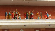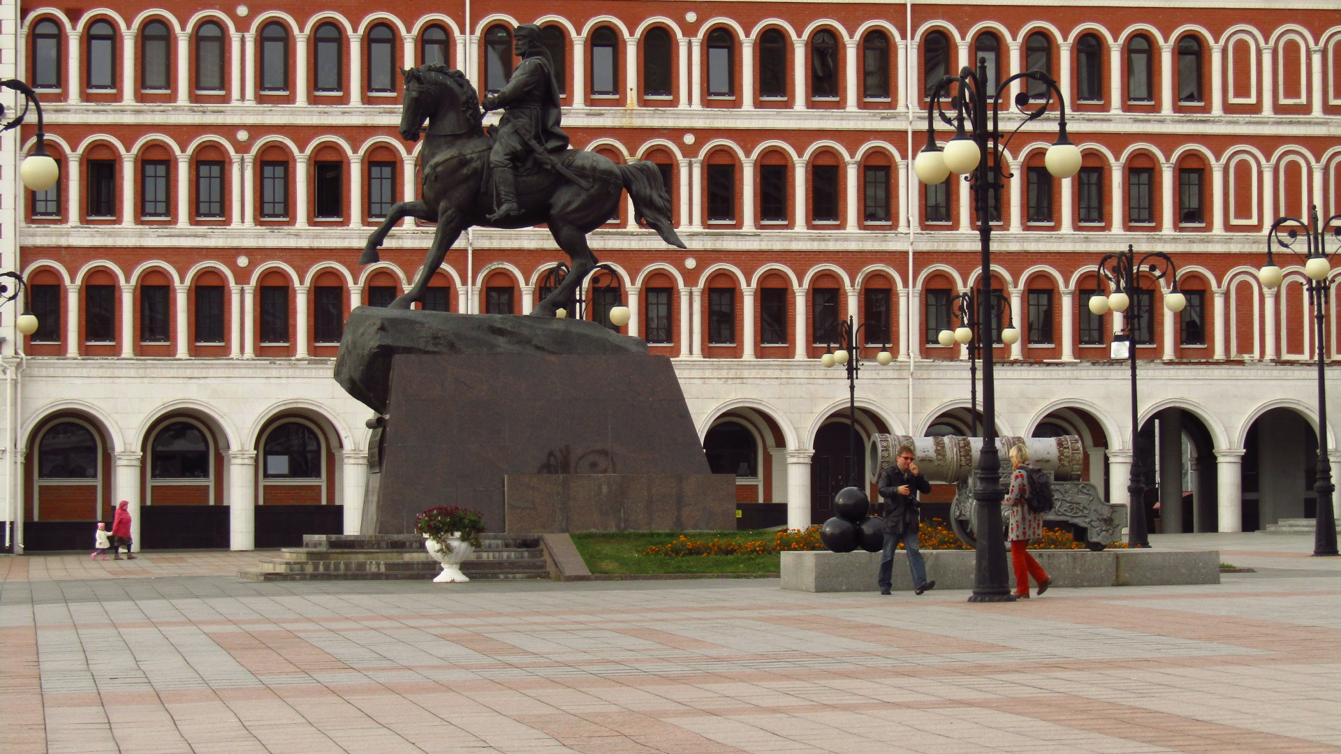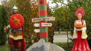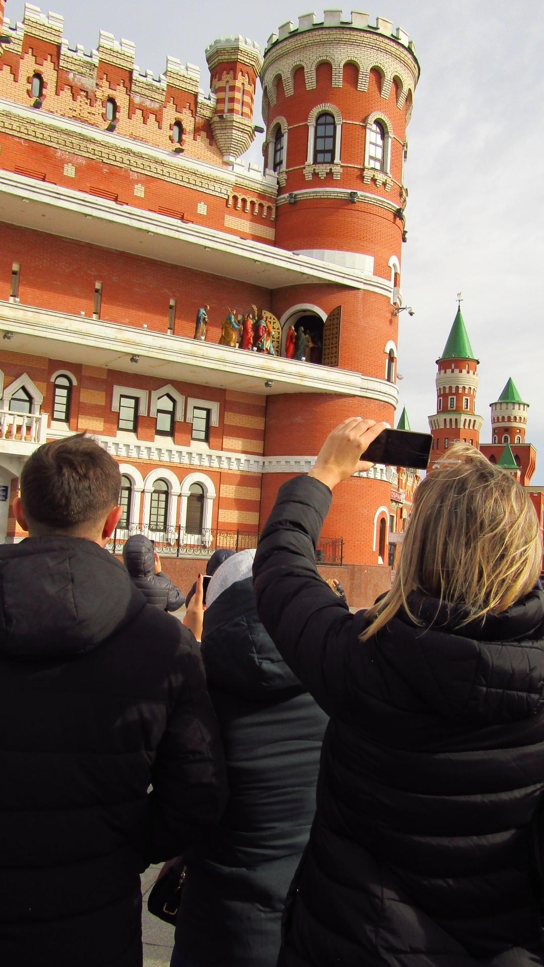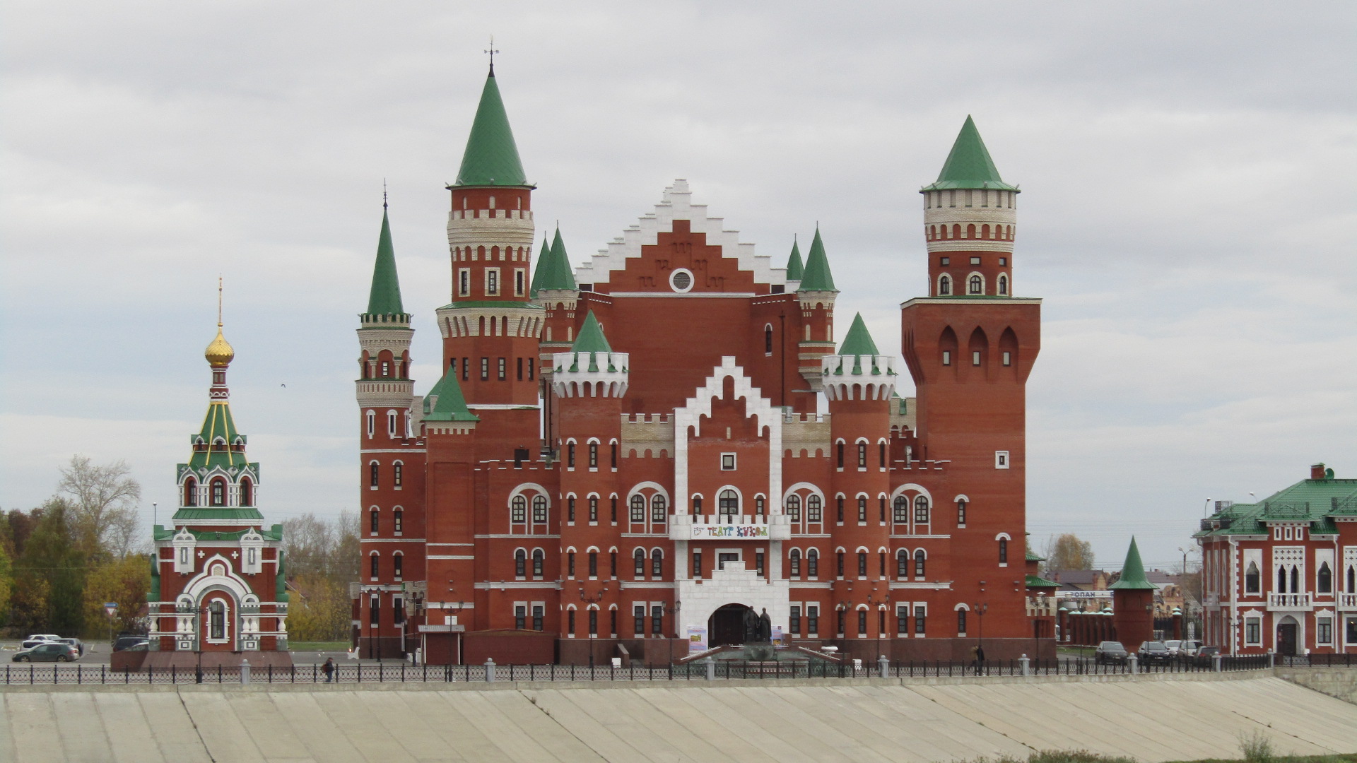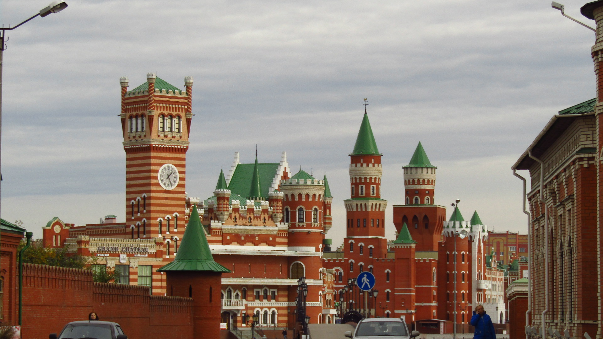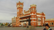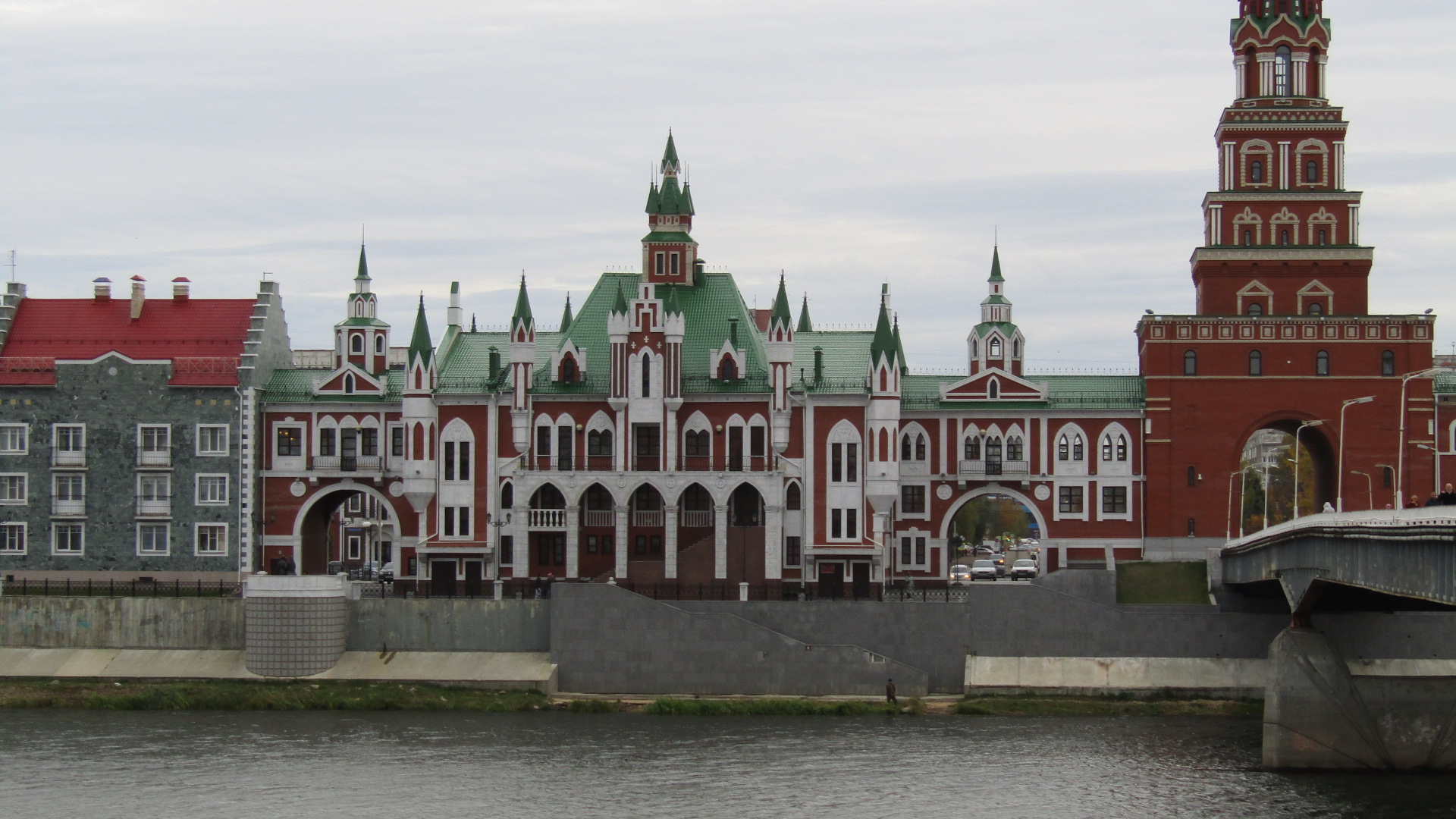 Until 2009, Yoshkar-Ola, 270 thousand inhabitants, was probably a unimpressive provincial town with mostly undeveloped area along the banks of the Malaya Kokshaga river passing through it, that were being flooded every year. The appearance of the area along the river has radically changed in the past 9 years: the river was contained within high concrete banks, a large reservoir was created, and all the new water fronts were being filled with new buildings in fairytale pseudo-styles inspired by places from all over Europe. So there is now a children's puppet theatre in the form of a medieval Bavarian castle, a long Brugge Embankment, a square inspired by Venice' Piazza San Marco, and two tower clocks showing processions of apostles on every hour, walking/riding on the outside (a competition to the famous Prague astronomical clock? - at least the crowds of tourists are gathering in front of these clocks in the same way as in Prague). Some buildings are still unfinished. All this boom was apparently the idea of the former head of the republic, whom the local residents seem to be still grateful for what he did for the city, in spite of the fact that he has been imprisoned in a remand centre in Moscow where he is being investigated for allegedly taking a huge bribe. And in spite of that the Wikipedia article on him claims that Mari El budget deficit kept mushrooming under his watch, and there were human rights allegations against him.